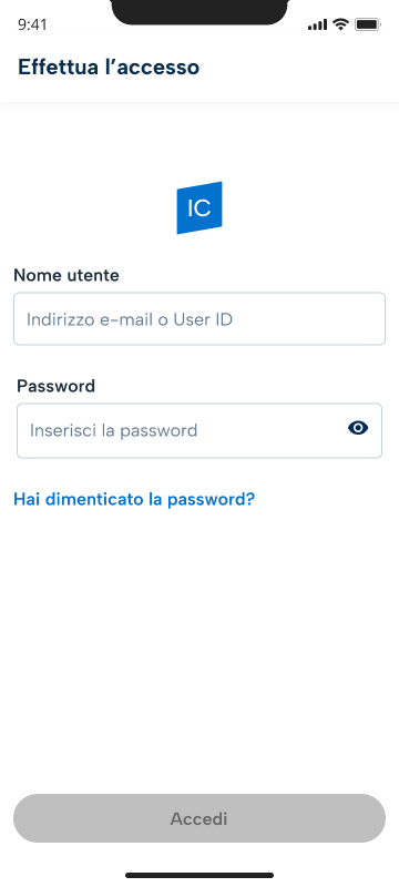 Al momento del primo accesso, inserisci le credenziali della tua Identità Digitale SPID nei campi “Email, Casella PEC, UserID o nome utente” e “Password” e convalida con un clic sul pulsante “Accedi“.