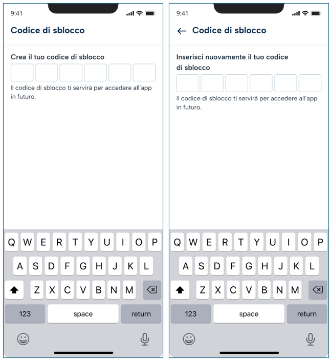 A questo punto ti viene chiesto di scegliere un codice di sblocco per accedere più velocemente all’app in futuro.
