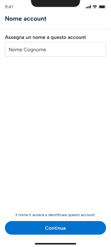 Assegna il “Nome Account” con il quale vuoi memorizzare l’account SPID all’interno dell’app.