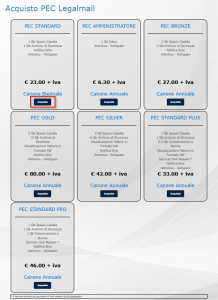 Verranno mostrate a video le varie tipologie di caselle pec acquistabili, scegliere la più adatta alle proprie esigenze e cliccare “acquista”
