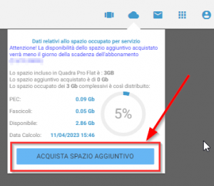 Per acquistare spazio aggiuntivo su Quadra, è necessario cliccare sull’icona