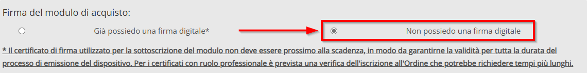 Avendo scelto come modalità di acquisto ”NON POSSIEDO UNA FIRMA DIGITALE” potrà trovare lo stato dell’ordine in: