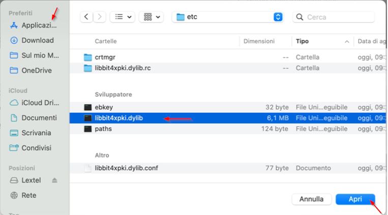 Dopo aver attivato il dispositivo o se lo stesso viene utilizzato su un nuovo computer dove non è mai stato inserita la firma digitale, è possibile procedere con la configurazione dei certificati sul computer IOS MAC.