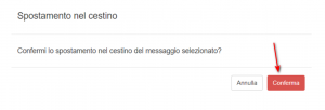 Successivamente sarà necessario confermare lo spostamento del messaggio selezionato cliccando su Conferma: il messaggio verrà spostato nel cestino.