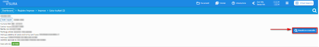 Il sistema farà visualizzare a video l’elenco delle imprese / persone trovate in base ai dati di ricerca inseriti.