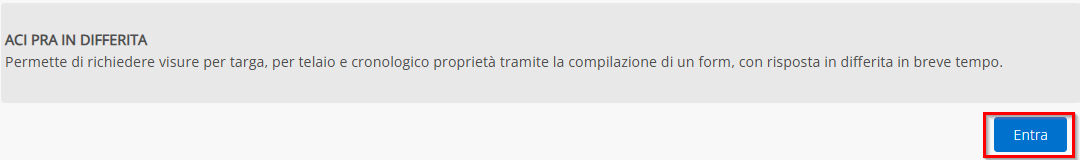 Cliccare sul tasto ENTRA in corrispondenza del riquadro rinominato ACI PRA IN DIFFERITA:
