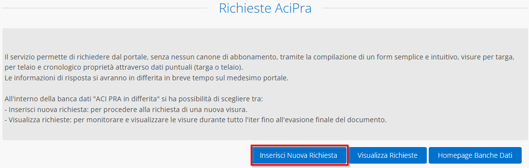 Nella schermata che si aprirà a video, selezionare il tasto INSERISCI NUOVA RICHIESTA: