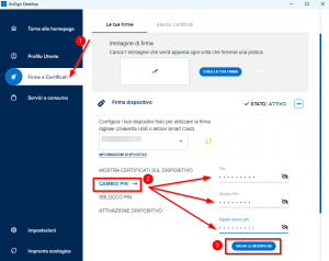 Il PIN sarà pertanto correttamente modificato, dovrà essere usato il nuovo dato per firmare digitalmente i file e per autenticarsi sui siti.
