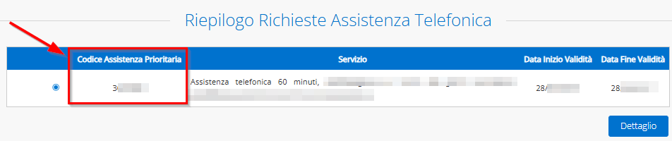 Nella schermata che si aprirà, il numero indicato nella colonna rinominata “Codice Assistenza Prioritaria” rappresenta il dato da utilizzare quando si contatta il Customer Care: