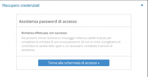 NOTA: Se in precedenza non è stato inserito ,il parametro e-mail ordinaria corrispondente all’informazioni di sicurezza, sarà necessario procede con la forzatura della password cliccando QUI