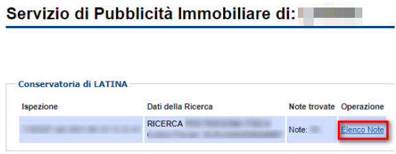 Selezionare la voce ELENCO OMONIMI / ELENCO NOTE sull’estrema destra per proseguire con la ricerca: