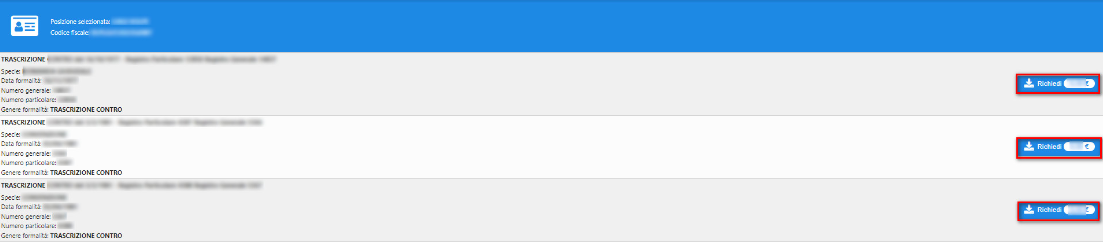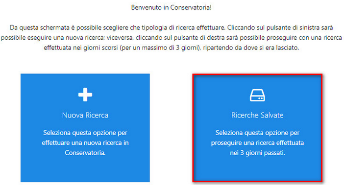 Per recuperare la ricerca effettuata in conservatoria, è necessario accedere all’e-commerce della propria iscrizione.
