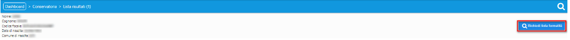Si visualizzerà a video l’elenco degli omonimi reperiti sui dati inseriti in fase della ricerca, per proseguire con la stessa, cliccare sul RICHIEDI LISTA FORMALITA’ a destra del soggetto di proprio interesse: