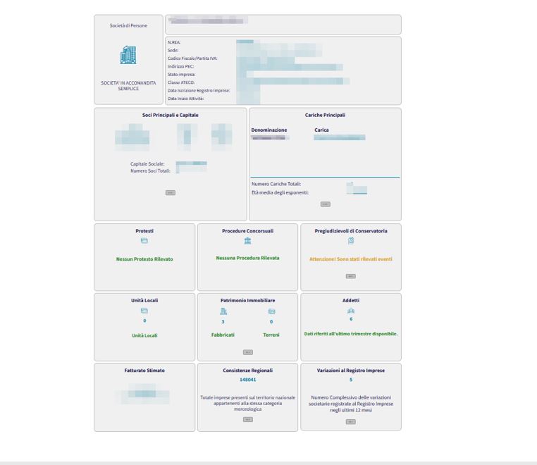Una volta eseguita la ricerca si visionerà il quadro generico sul soggetto ricercato come da scherma di seguito riportata: