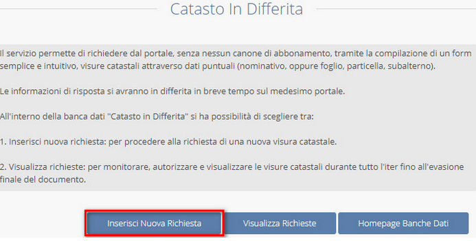 Cliccare sul tasto ENTRA in corrispondenza del riquadro rinominato Catasto in Differita: