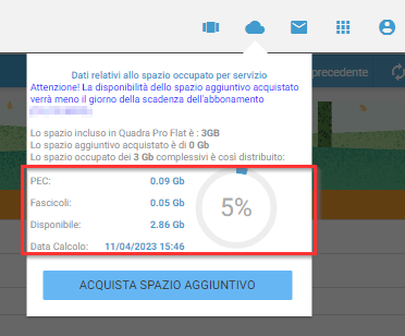 Per verificare lo spazio occupato su Quadra è necessario effettuare il login con firma digitale o con credenziali e cliccare in alto a destra sull’icona