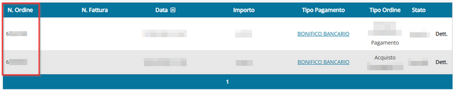 Verranno mostrati a video gli ordini effettuati, il numero riportato nella prima colonna rinominata N. ORDINE sarà il dato da inserire nella causale del versamento: