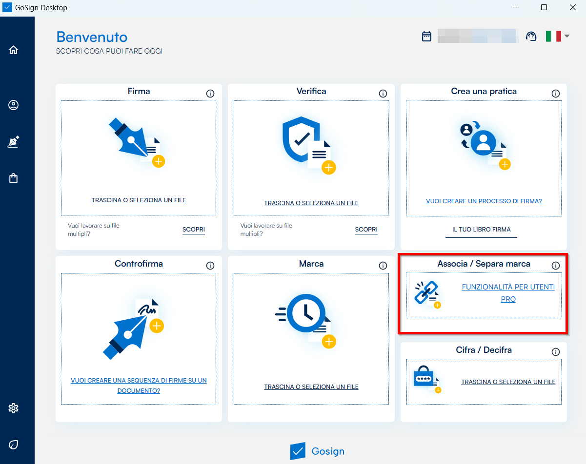 La funzione (disponibile con la licenza PRO) consente di associare una marca temporale ad un file firmato digitalmente in un momento diverso ottenendo comunque un unico file che può avere diversi formati di file a seconda dell’esigenza:
