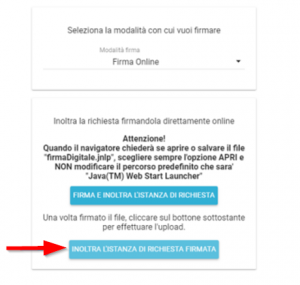 Conclusa la procedura di firma, cliccare su Inoltra l’istanza di richiesta firmata per completare l’invio della richiesta.