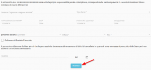 Subito dopo l’inoltro dell’istanza di richiesta, verrà riepilogato a video il relativo esito. Cliccando sull’icona a destra