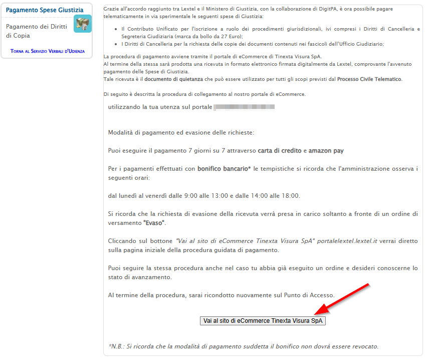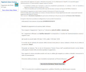 Per effettuare il pagamento dei Diritti di Copia avviene attraverso il portale eCommerce cliccando sul pulsante Vai al sito eCommerce.