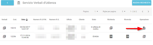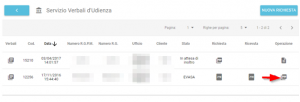 Il sistema mostrerà a video il numero di verbali disponibili con le relative date delle udienze, il riferimento del giudice e il numero di pagine di ciascun verbale.