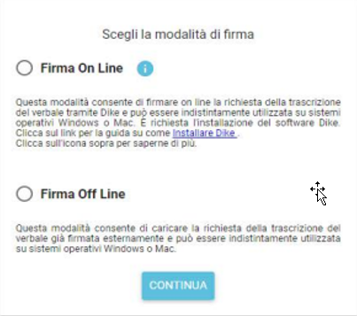 In alternativa, sarà possibile utilizzare la Firma Offline che consente di caricare la richiesta della trascrizione già firmata esternamente.