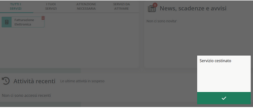 Quando, accedendo alla banca dati della Fatturazione Elettronica, compare in alto a sinistra il messaggio SERVIZIO CESTINATO: