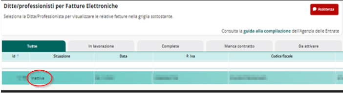 Quando lo stato dell’operatore economico o della ditta risulta INATTIVO:
