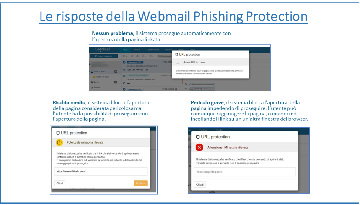 Le risposte fornite dal nuovo tool “Phishing Protection per la Legalmail” tramite l’accesso su Webmail, possono essere: