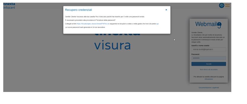 L’accesso alla Casella di Posta Elettronica Certificata viene bloccata quando per 5 volte è stata inserita una password errata.