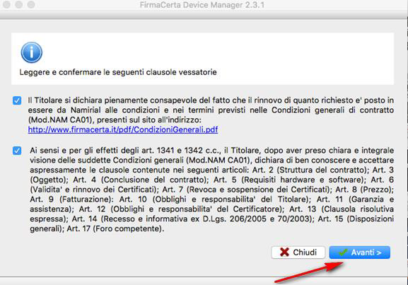 Avviare l’applicazione e cliccare su Strumenti – Rinnovo Certificati. Accettare le clausole e cliccare sul tasto “Avanti”.