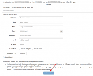 Se richiesto, allegare il mandato e il documento del cliente. Infine, cliccare sulla funzione Inoltra Richiesta per inviare la richiesta.