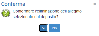 Verrà visualizzata una schermata di conferma: cliccando su Sì il documento verrà rimosso dal deposito e sarà quindi possibile tornare alla scheda Documenti ed eliminarlo anche da lì