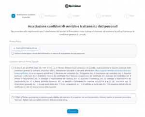 Per lo SPID dopo aver effettuato l’autenticazione si viene riportati sulla compilazione dei dati, nel riconoscimento con SPID i dati di residenza e del documento vengono recuperati dall’identità digitale; quindi, i dati del documento potrebbero non essere gli stessi di quelli inseriti in fase di acquisto firma. Qui l’unico dato da inserire sarà quindi la cittadinanza.