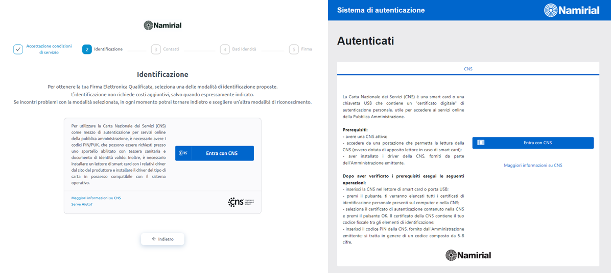 Riconoscimento con CNS
