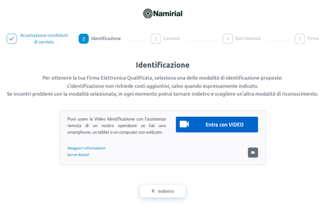 I passaggi successivi saranno gli stessi dei riconoscimenti sopra indicati, controllo dei dati anagrafici e firma del contratto.