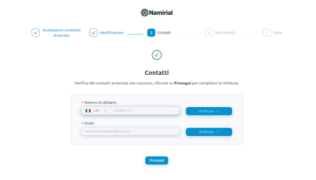 I passaggi successivi saranno gli stessi dei riconoscimenti sopra indicati, controllo dei dati anagrafici e firma del contratto.