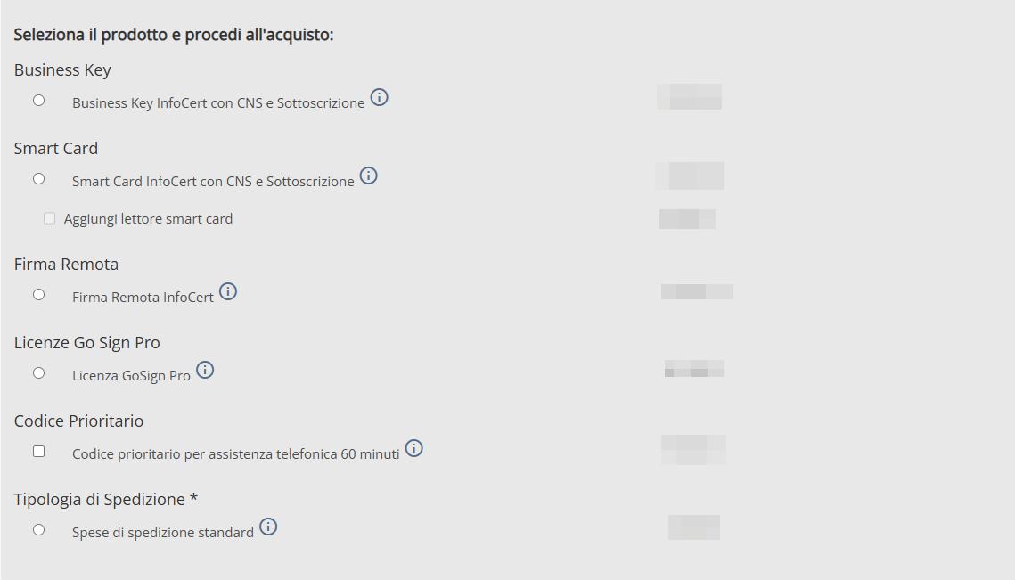 Acquisto Firma Digitale Infocert: nella procedura di acquisto il sistema Le chiederà di indicare se è già in possesso di un dispositivo valido e attivo oppure no.